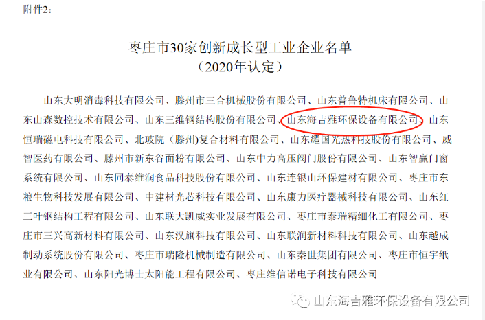 熱烈祝(zhu)賀海吉雅(ya)環(huan)保(bao)被評爲市創(chuang)新(xin)成(cheng)長型工(gong)業(ye)企業(ye)