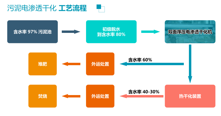 汚(wu)泥電滲(shen)透(tou)榦化工藝流(liu)程(cheng)